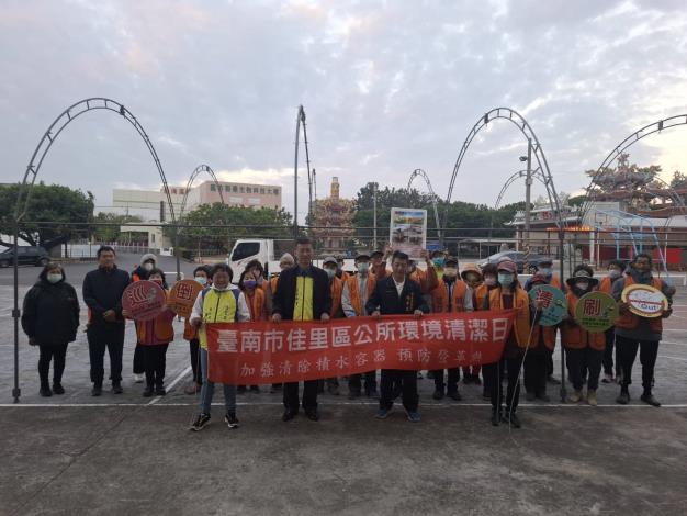 本所於嘉福社區活動中心辦理12月份環境清潔日,主任秘書 #劉發仲進行登革熱防治、菸蒂不落地等議題向民眾宣導。