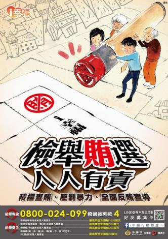 政風室反賄選宣導:府城有愛 攜手反賄;檢舉賄選 人人有責;檢舉專線0800-024-099撥通後再按4