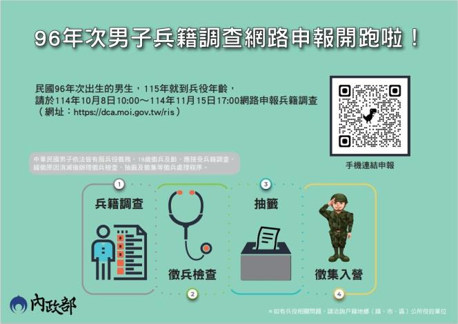 民國96年次出生的男生,115年起正式進入兵役年齡!